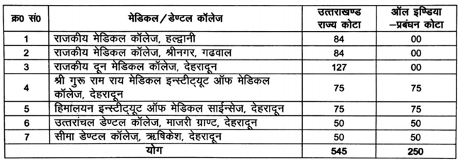 उत्तराखंड में एमबीबीएस व बीडीएस की सीटें