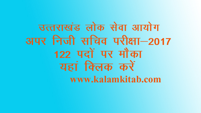 उत्तराखंड लोक सेवा आयोग ने सचिवालय और आयोग कार्यालय में अपर निजी सचिव के 122 पदों पर भर्ती को विज्ञापन प्रकाशित किया है। इसके लिए 21 अगस्त तक ऑनलाइन आवेदन कर सकते हैं।