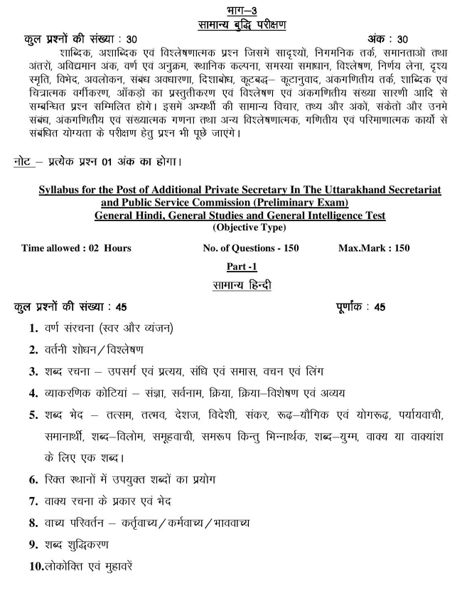 अपर निजी सचिव (उत्तराखंड लोक सेवा आयोग) – 05 पद (सामान्य के 03, ओबीसी का 01 और एसटी का 01 पद)